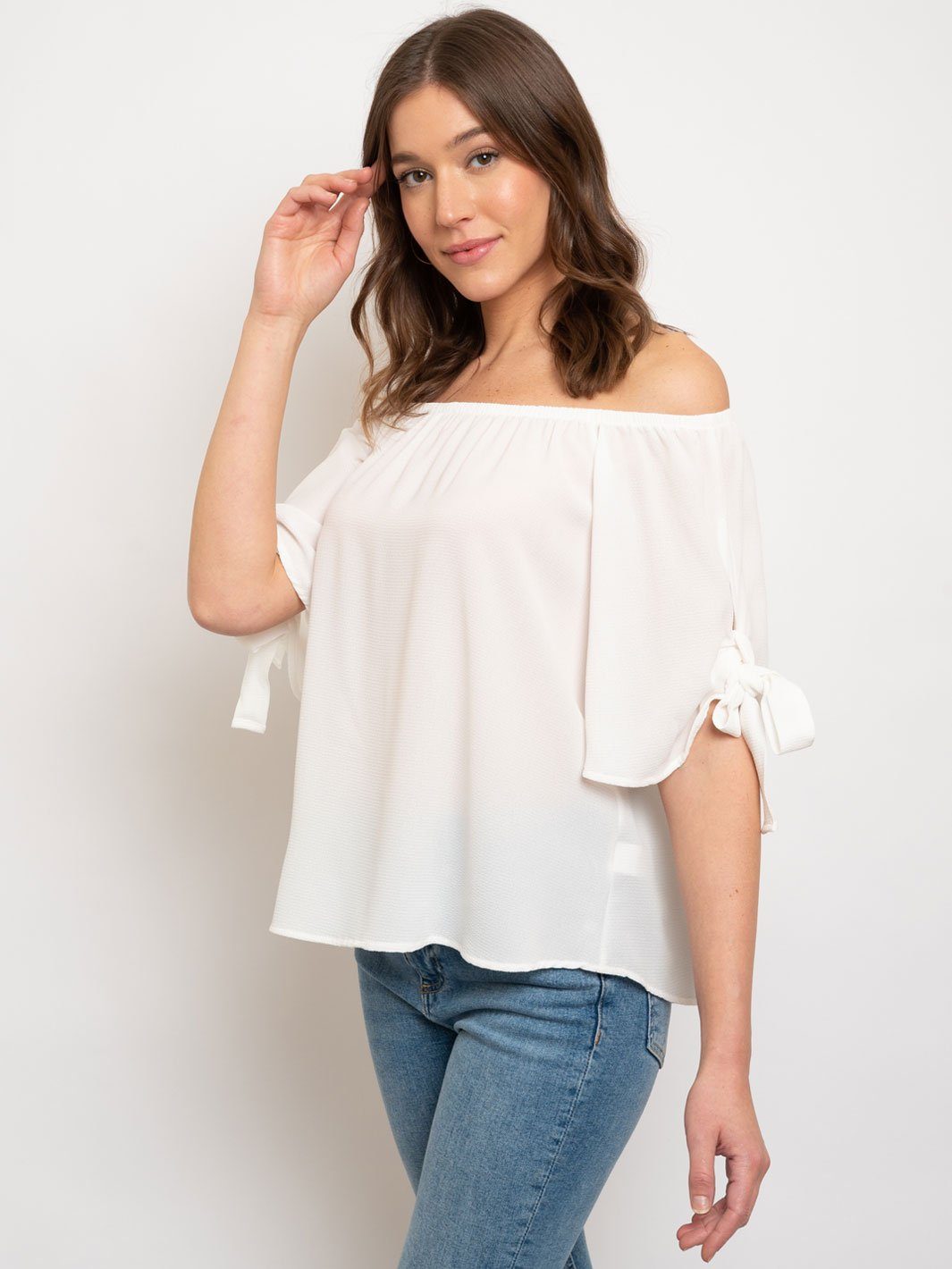 Complete the look:The Off-Shoulder Sleeve Tie Blouse is a hit among boutique owners for its versatile styling and high markup potential. Its trend-forward design ensures it remains a top choice for retailers looking to cater to the latest fashion trends. The reliable quality and comfortable fit make it a consistent bestseller, enhancing both in-store displays and online catalogues.