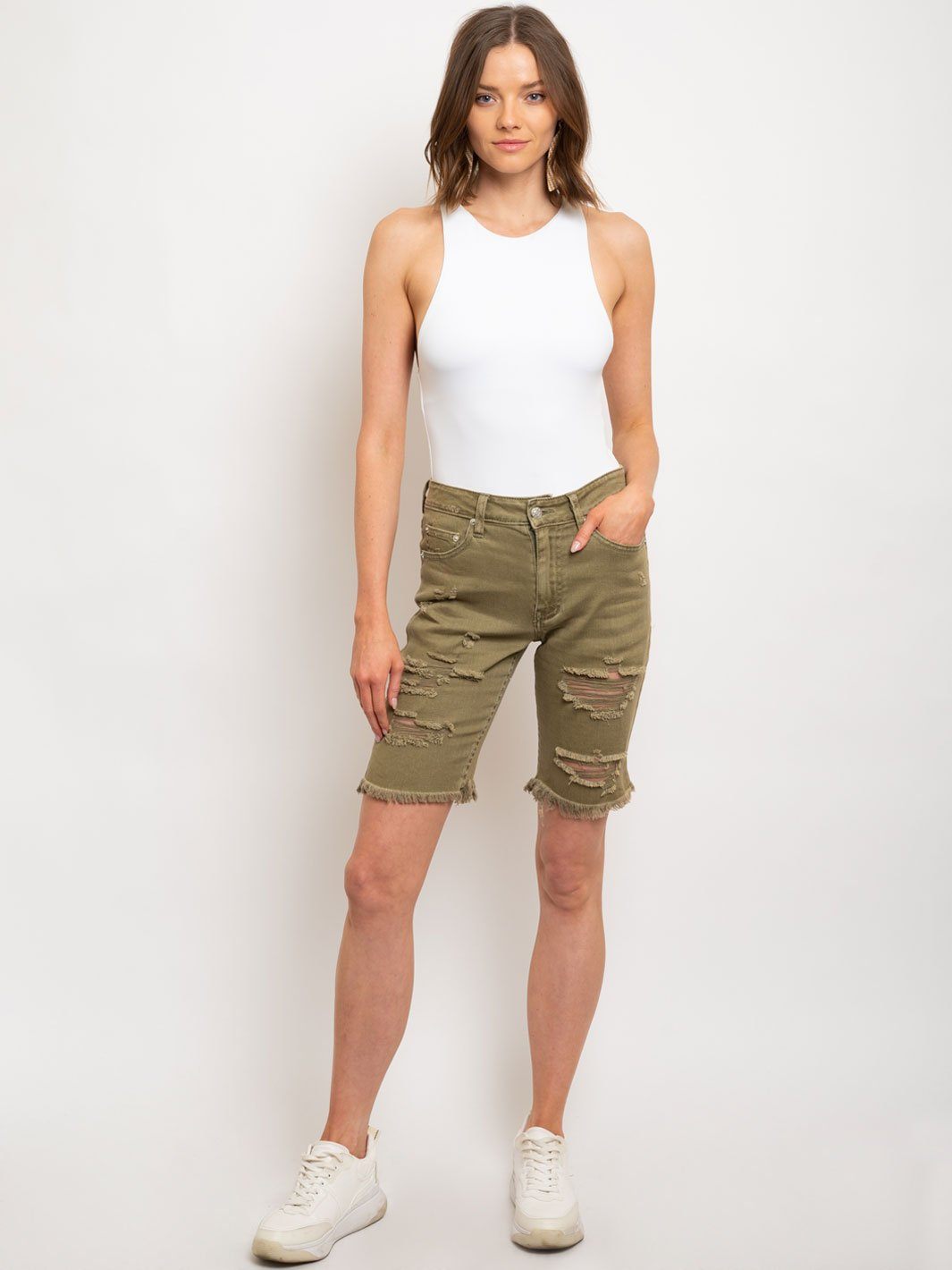 Complete the look:Women's Ripped Denim Shorts are a must-have for any boutique looking to offer trendy and versatile pieces to their customers. With its comfortable fit and flattering silhouette, this item is sure to sell out quickly. The ripped design adds just the right amount of edge to appeal to fashion-forward buyers. And with its reliable reorder potential and high markup, these shorts are a valuable addition to any retailer's inventory. Don't miss out on the opportunity to showcase these shorts in your store or online shop.