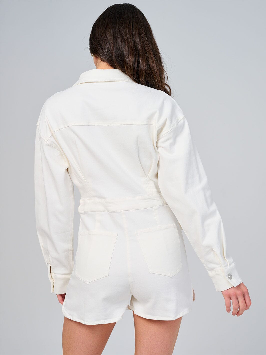 WOMEN'S LONG SLEEVE POCKETS BUTTON CLOSURE DENIM ROMPER