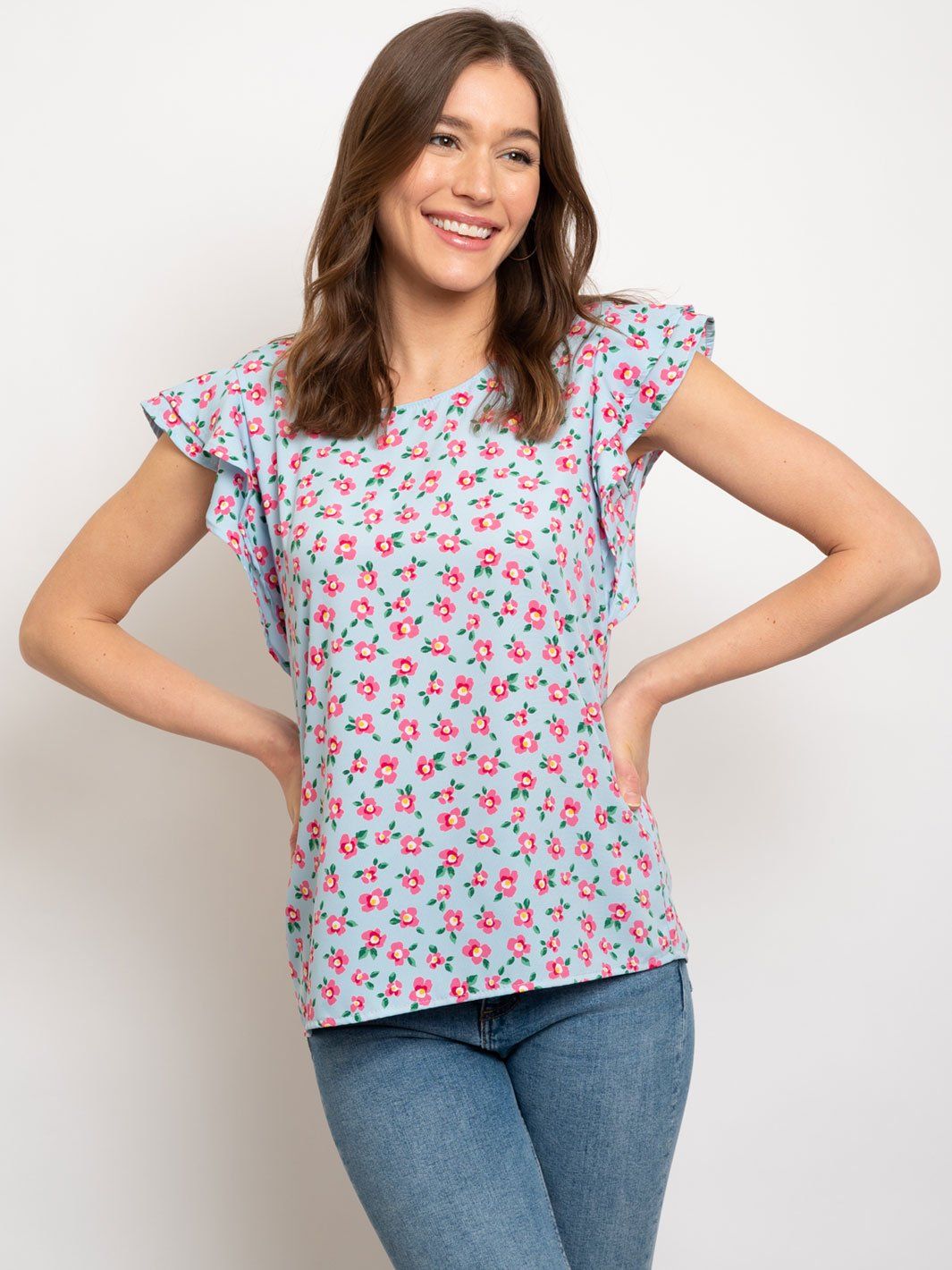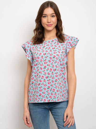 WOMEN'S RUFFLE SLEEVE FLORAL TOP