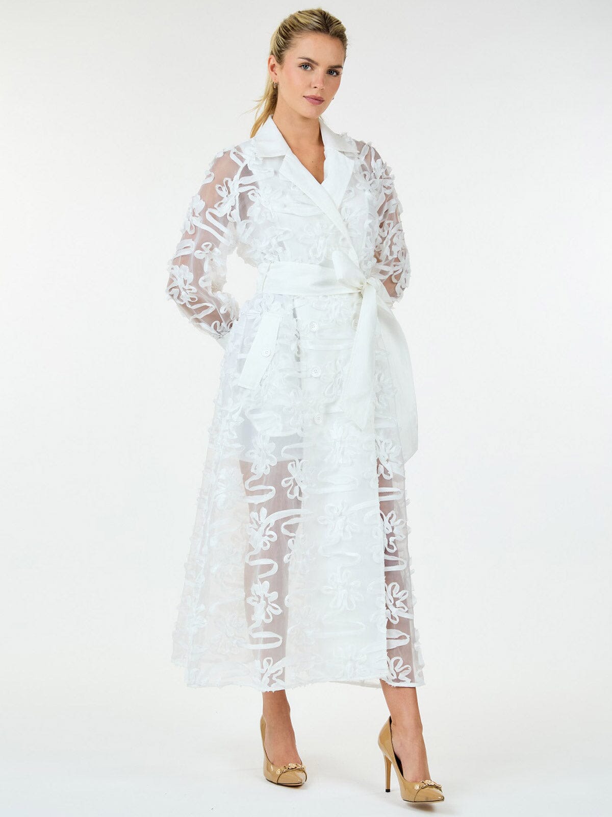 Features:Polyester-Tencel blend, flattering full-length silhouette, button-up front, self-tie waist detail, ideal for layering, seasonless appeal, boutique favorite.
