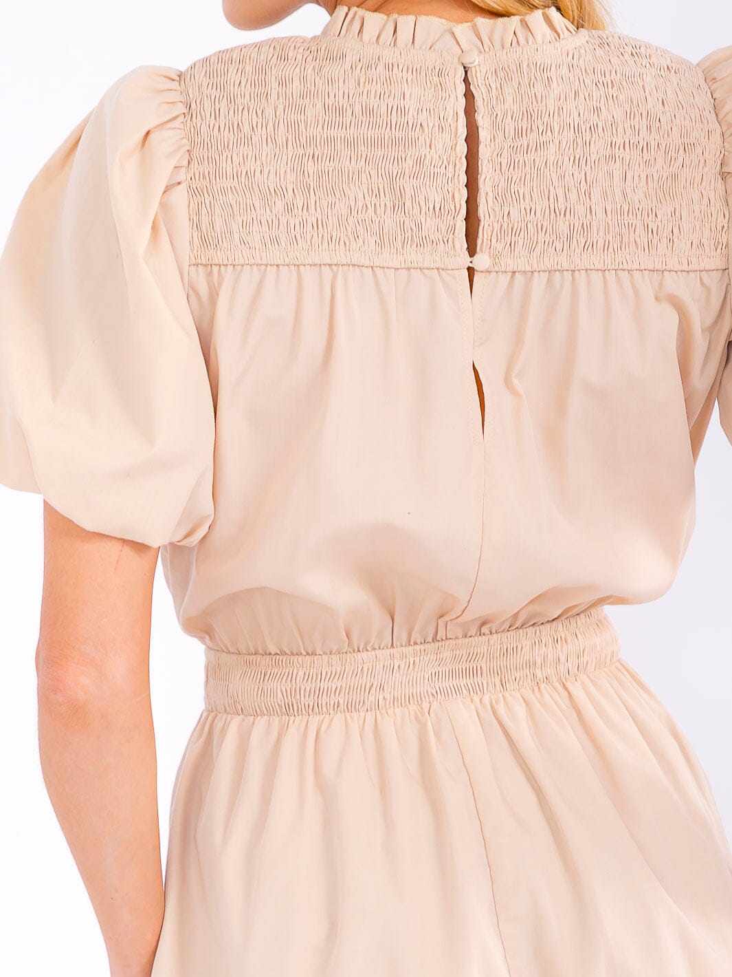 Refresh your seasonal assortment with this short puff sleeve mini dress, designed with a flattering elastic waist and tiered skirt. Crafted from a premium polyester-cotton blend with a full lining, the dress features a modern silhouette that moves effortlessly from casual brunches to warm-weather events. Its voluminous sleeves and feminine tiers make it a bestseller with trend-focused boutiques, while the versatile mini length invites styling for a variety of occasions. This piece is ideal for retailers seeking youthful, contemporary looks that offer both comfort and standout appeal.