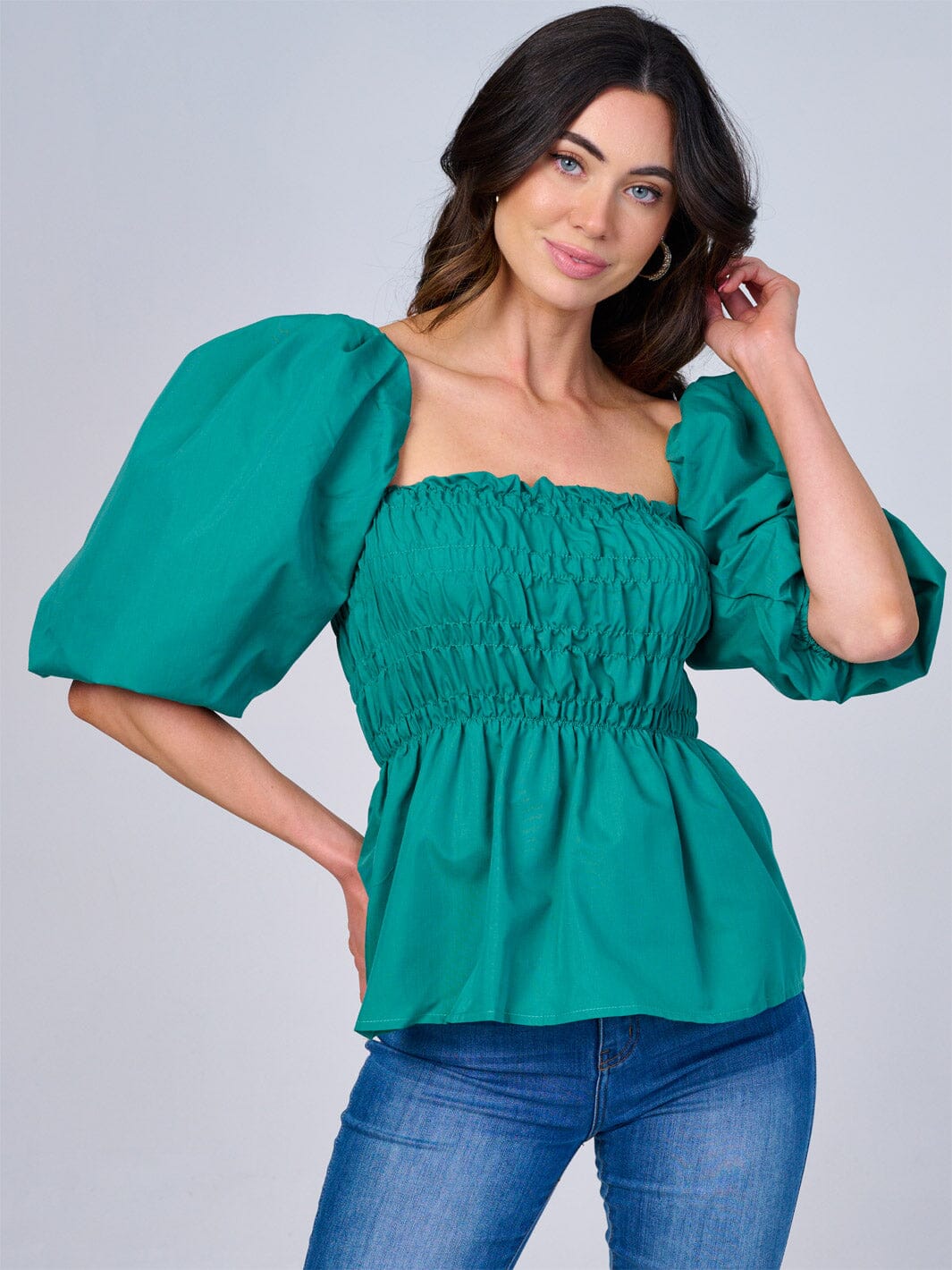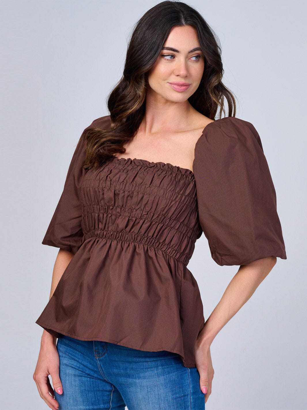 Introducing a chic and versatile smock blouse perfect for the modern woman. Featuring short puff sleeves and a flattering peplum silhouette, this stylish top seamlessly combines comfort with elegance. Ideal for brunch dates, casual outings, or resort vacations, it offers a breathable fit that keeps you looking effortlessly polished. With its soft fabric and trendy design, this blouse is sure to be a staple in any boutique's collection.