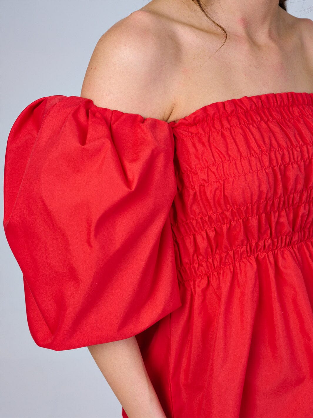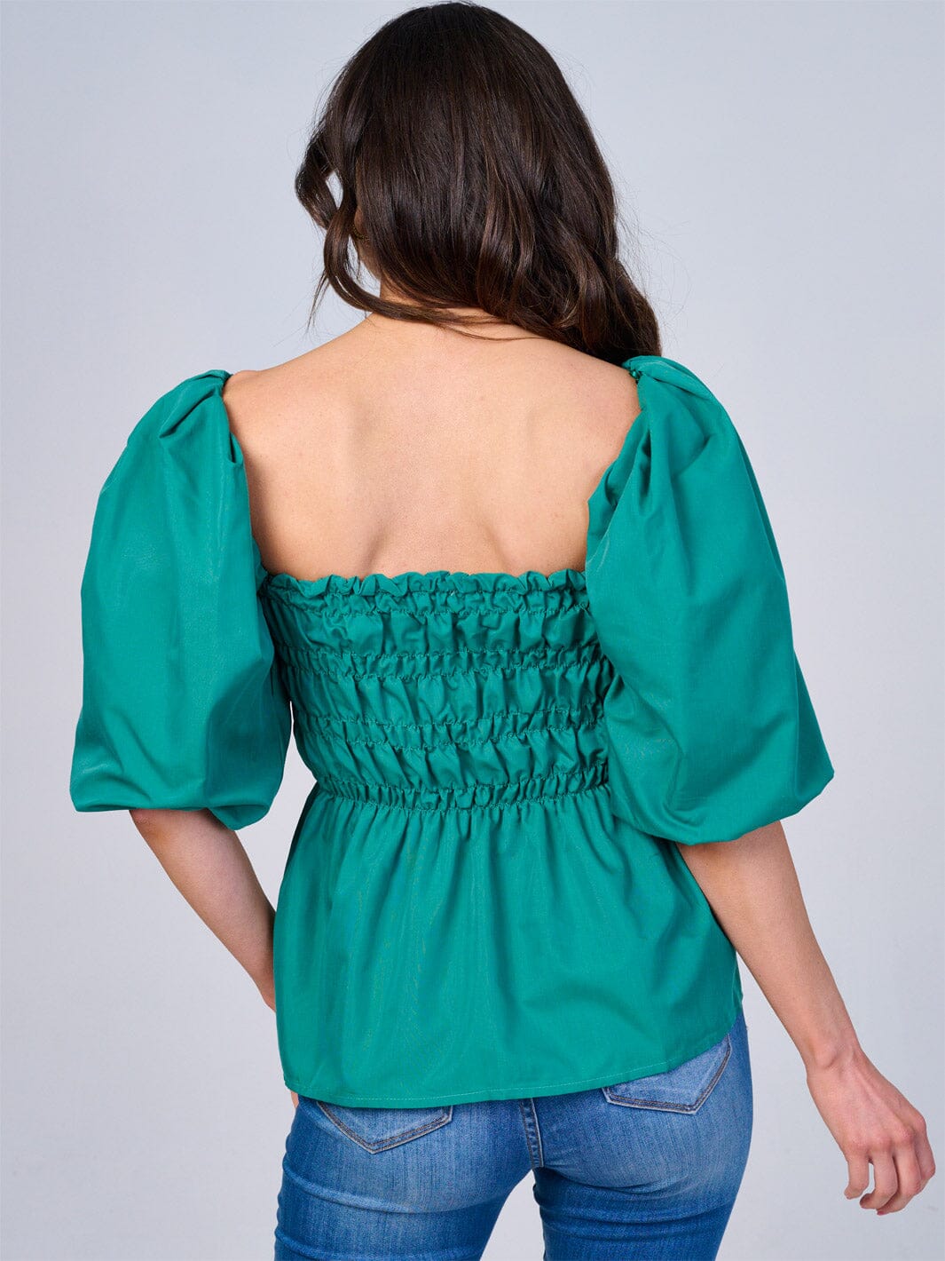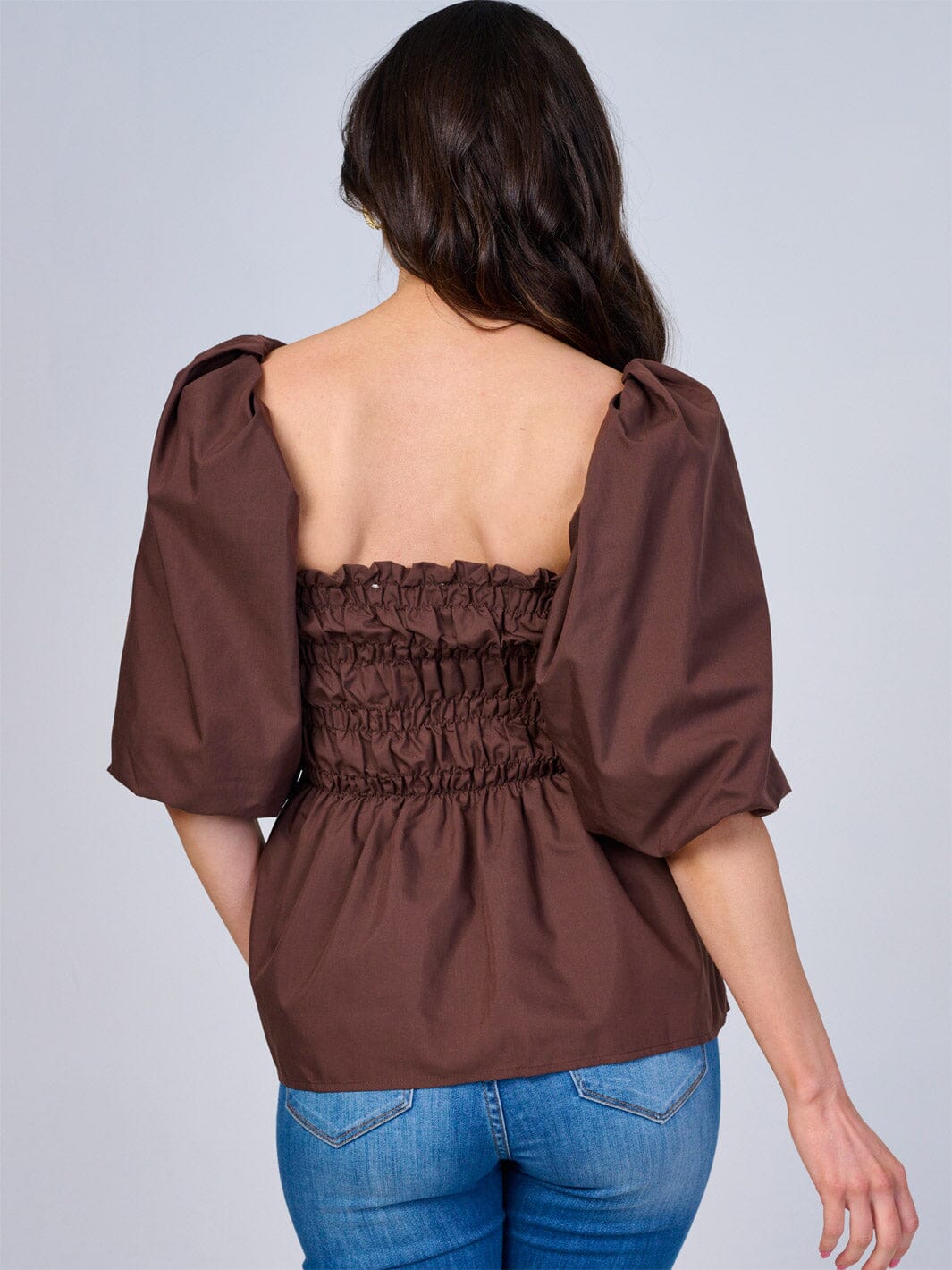 puff sleeves, peplum design, lightweight fabric, breathable, versatile styling, chic silhouette, easy care, everyday wear