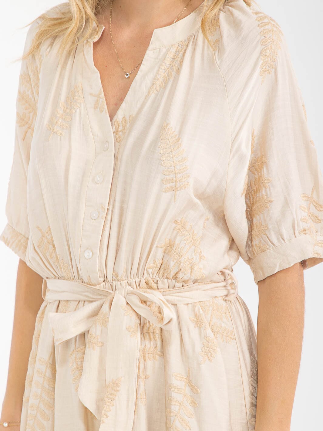 Elevate your boutique's selection with our chic Women's Button-Up Maxi Dress, featuring intricate embroidered details and a flattering self-tie waist. Crafted from a luxurious blend of rayon and chinlon, this dress offers a flowy silhouette perfect for any retail display. Ideal for casual outings or elegant gatherings, this piece promises to be a hit with fashion-forward customers.