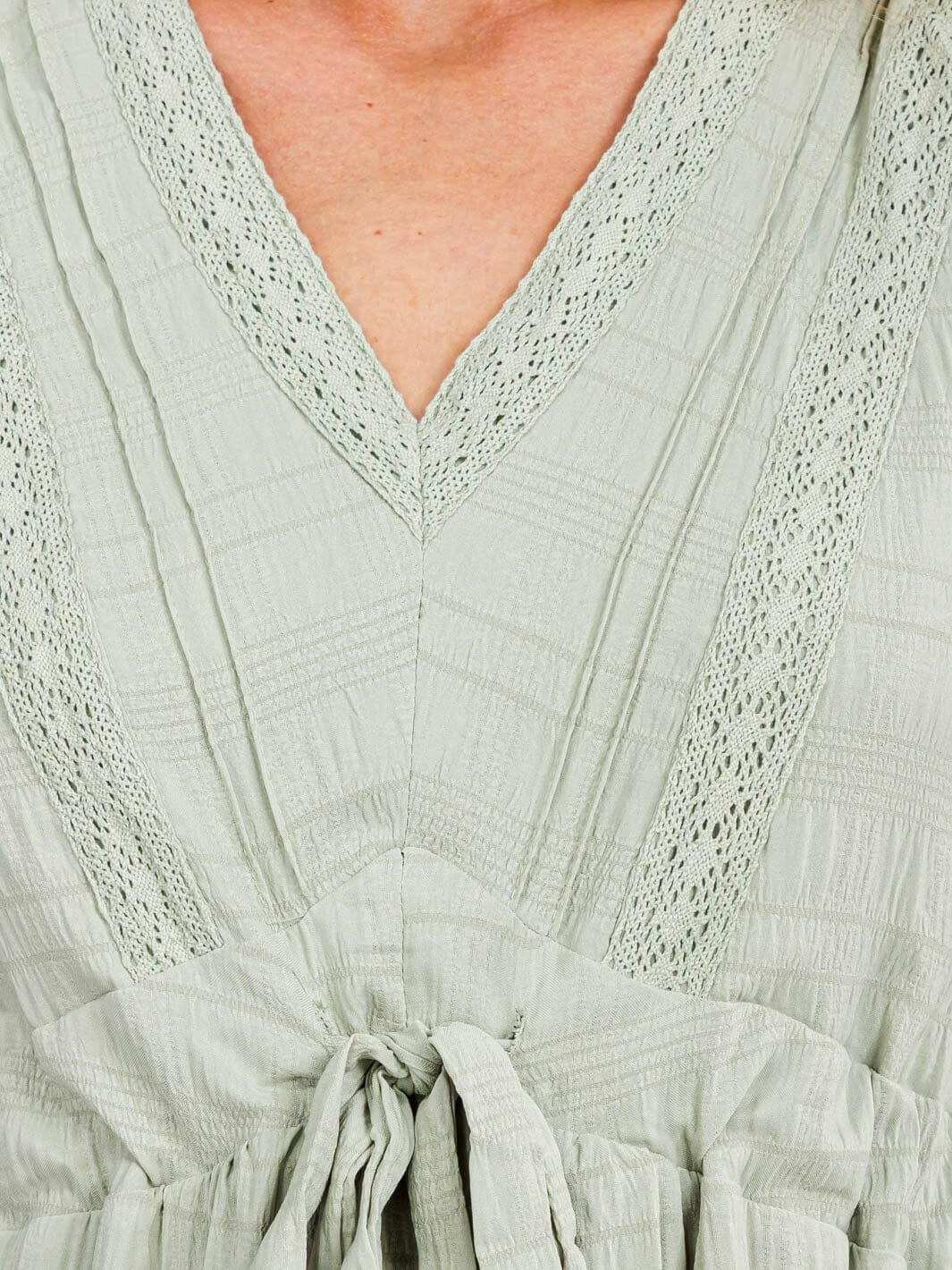 Features:Lightweight fabric, V-neckline, Self-tie waist, Flattering silhouette, Versatile styling options, Trend-forward design, Bestseller with boutiques.