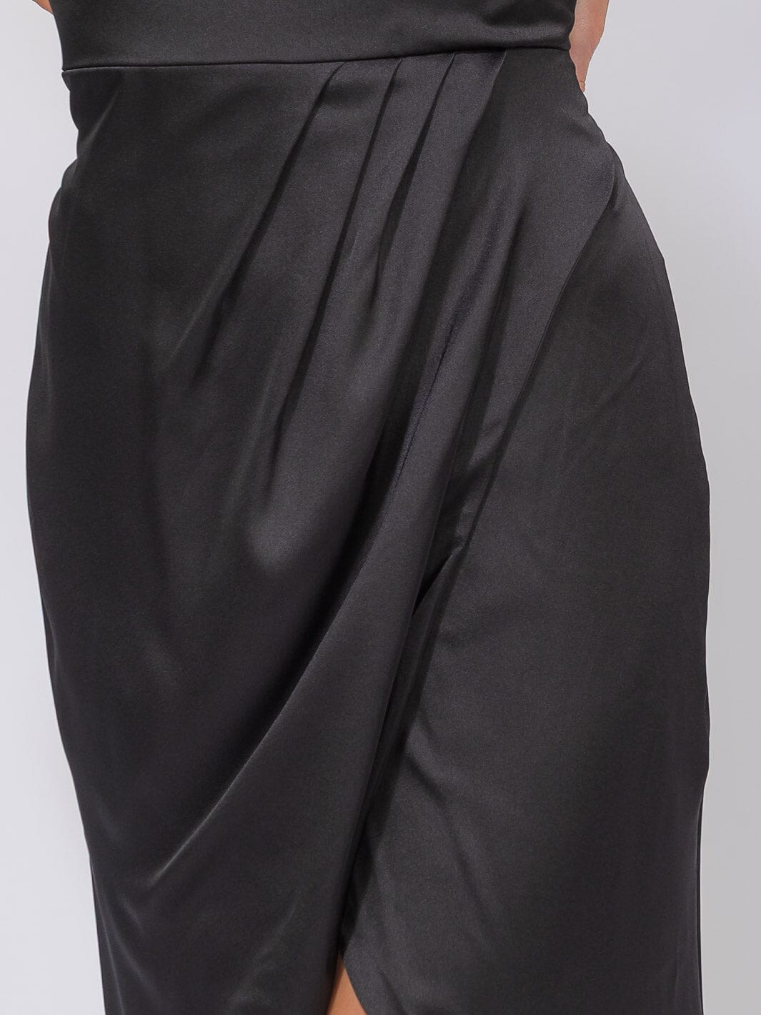 Luxurious polyester blend, elegant one-shoulder design, eye-catching front slit, versatile maxi length, ideal for formal occasions, flattering silhouette, popular boutique choice.