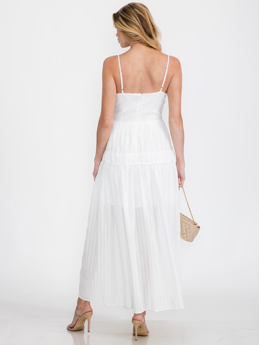 Complete the look:This Sleeveless V-Neck Maxi Dress with Swiss Dots is a trend-forward option that appeals to a wide range of customers. Its effortless style and practical design features make it a reliable bestseller for boutiques looking to enhance their summer collection. Retailers appreciate its high markup potential and the ease of creating eye-catching displays for in-store and online settings, ensuring strong sales and repeat orders.