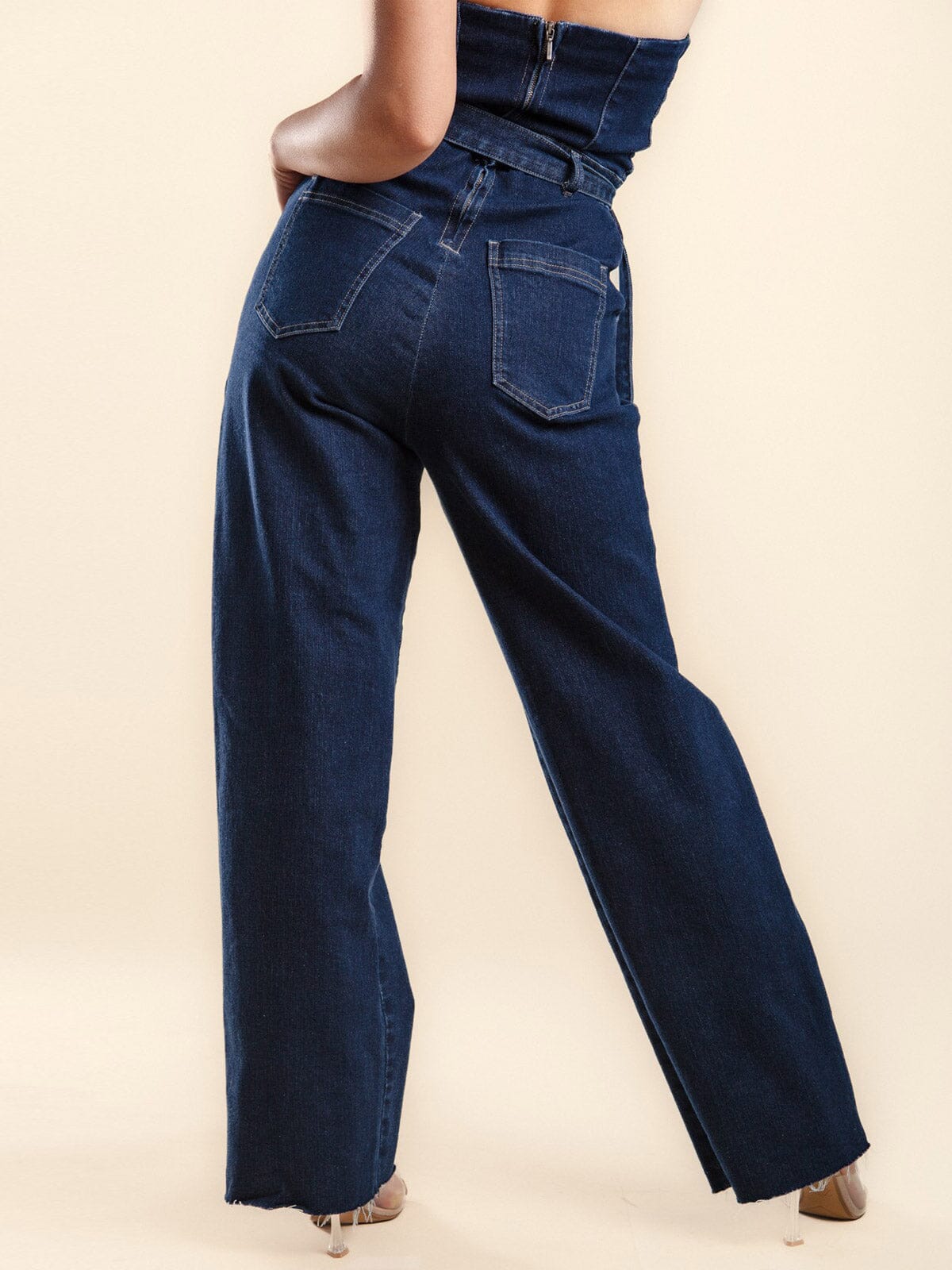This chic sleeveless denim romper with a V-neckline and belted waist is a standout piece for any fashion-forward collection. Made with a comfortable cotton blend, it features practical pockets and a flattering silhouette, perfect for transitioning from day to night. Ideal for casual outings or dressed up for evening events, this jumpsuit is a bestseller with fashion boutiques looking to offer versatile and trendy options.