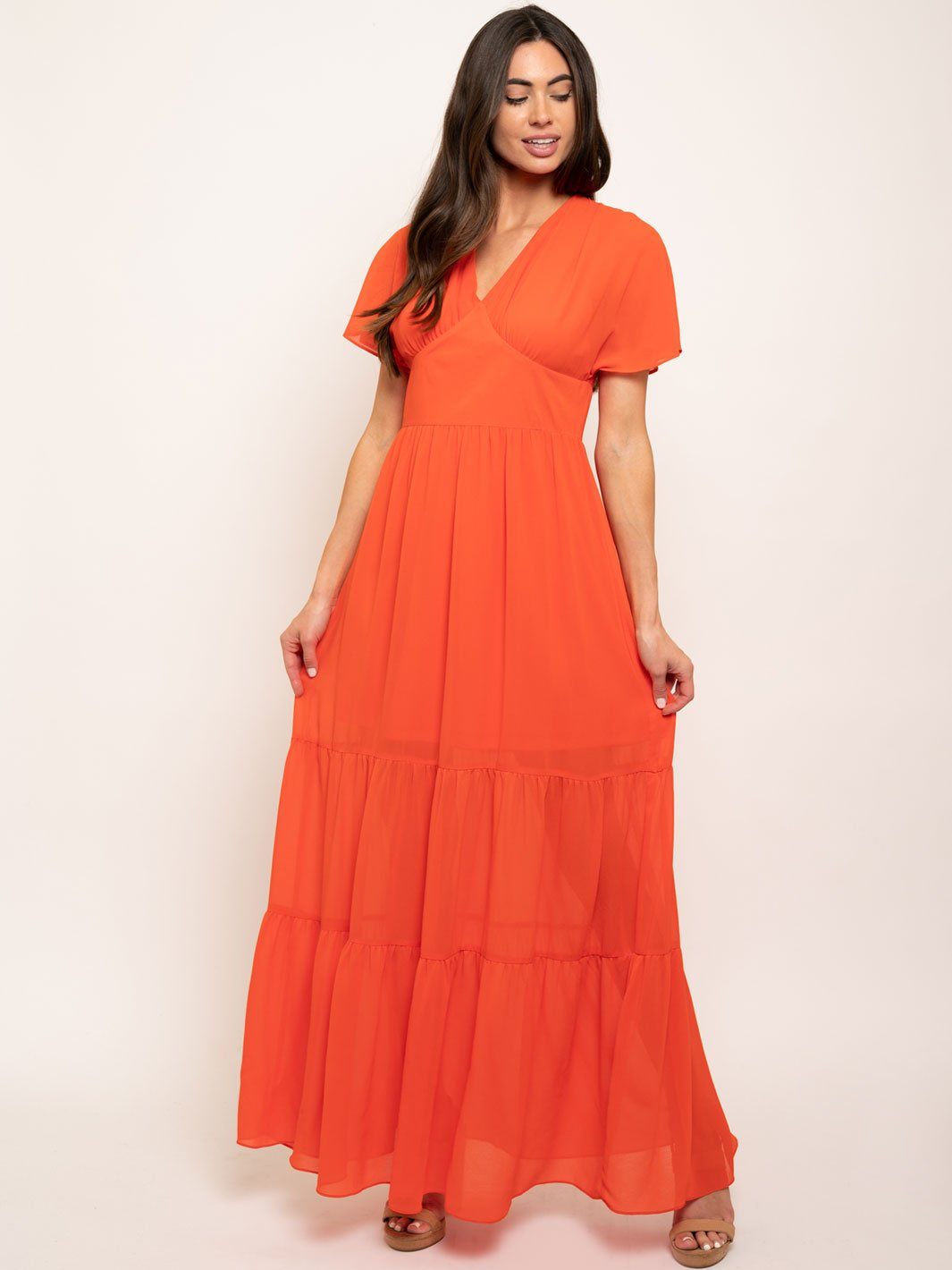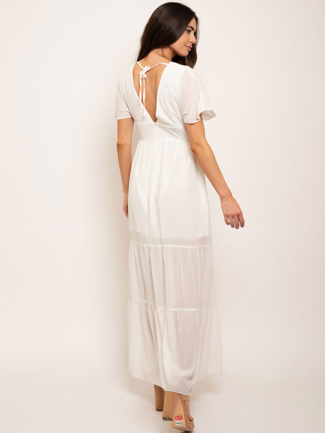 WOMENS' V-NECK RUFFLE MAXI DRESS