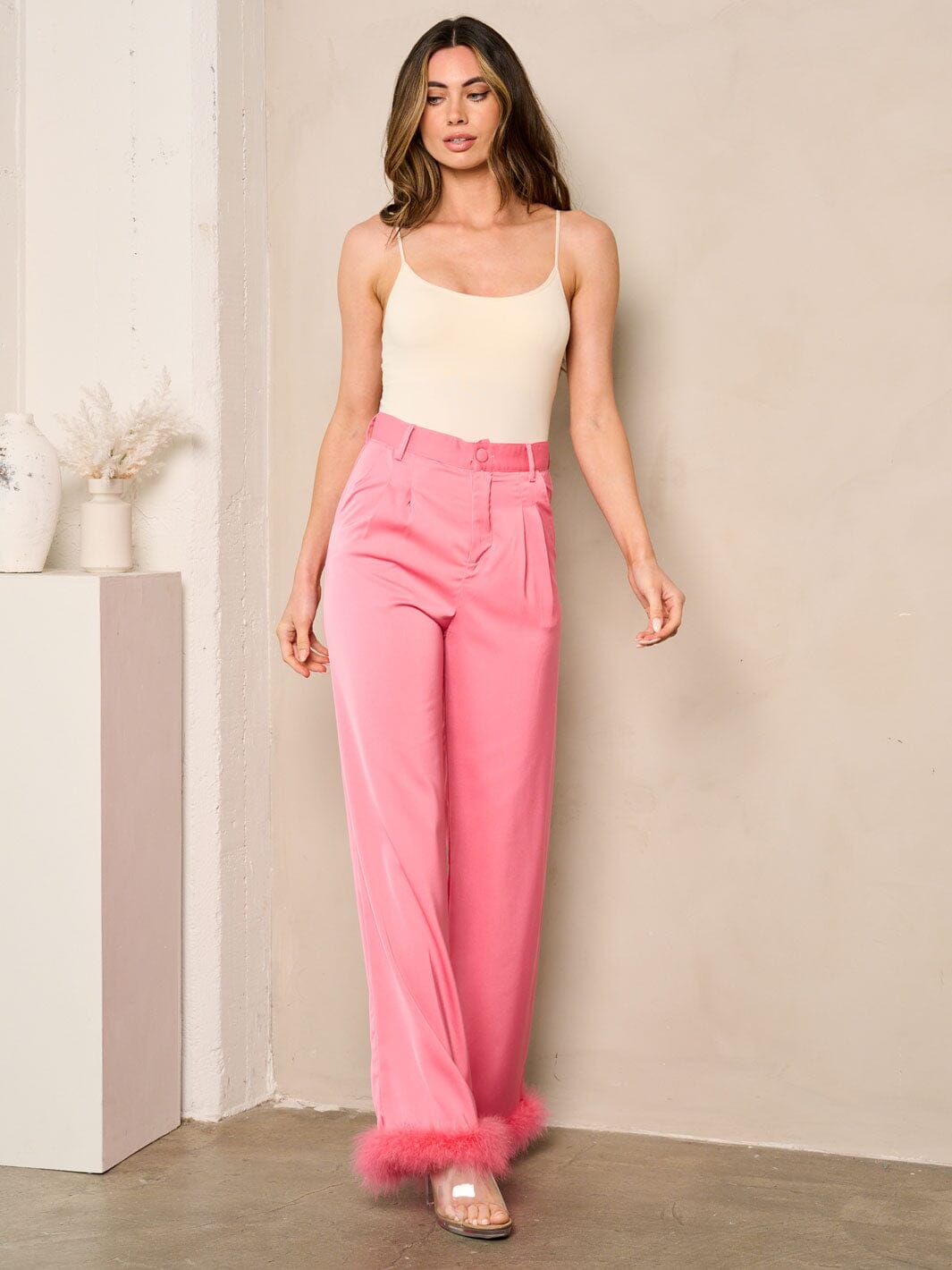 WOMEN'S WIDE FLUFFY LEG DETAILED PANTS